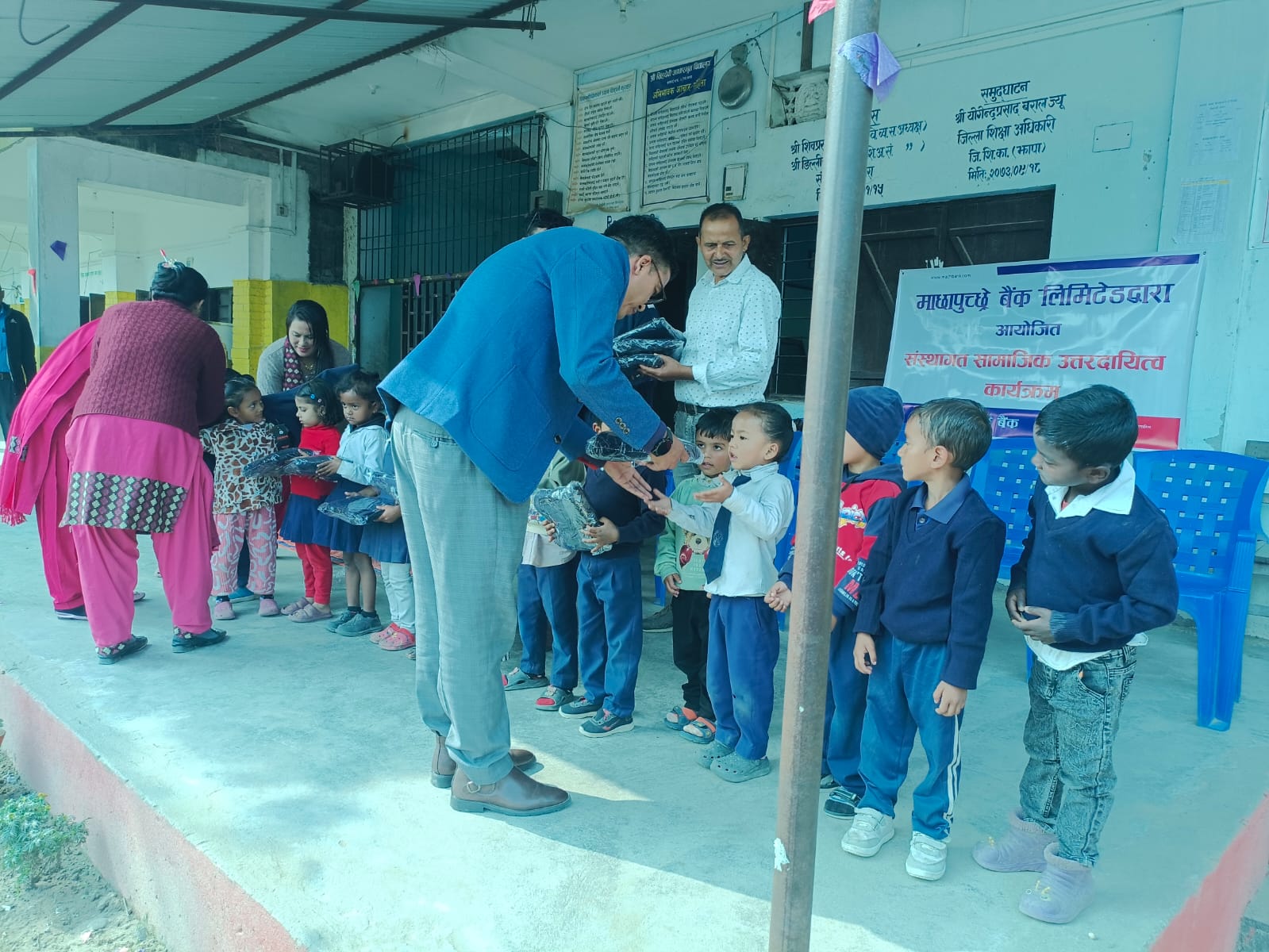 Machhapuchchhre Bank, as a part of its Corporate Social Responsibility (CSR) initiative, provided 390 pcs of winter jackets to the students of Singhadevi Madhyamik Vidhyalaya, Kankai Municipality, Ward No. 4, Jhapa.