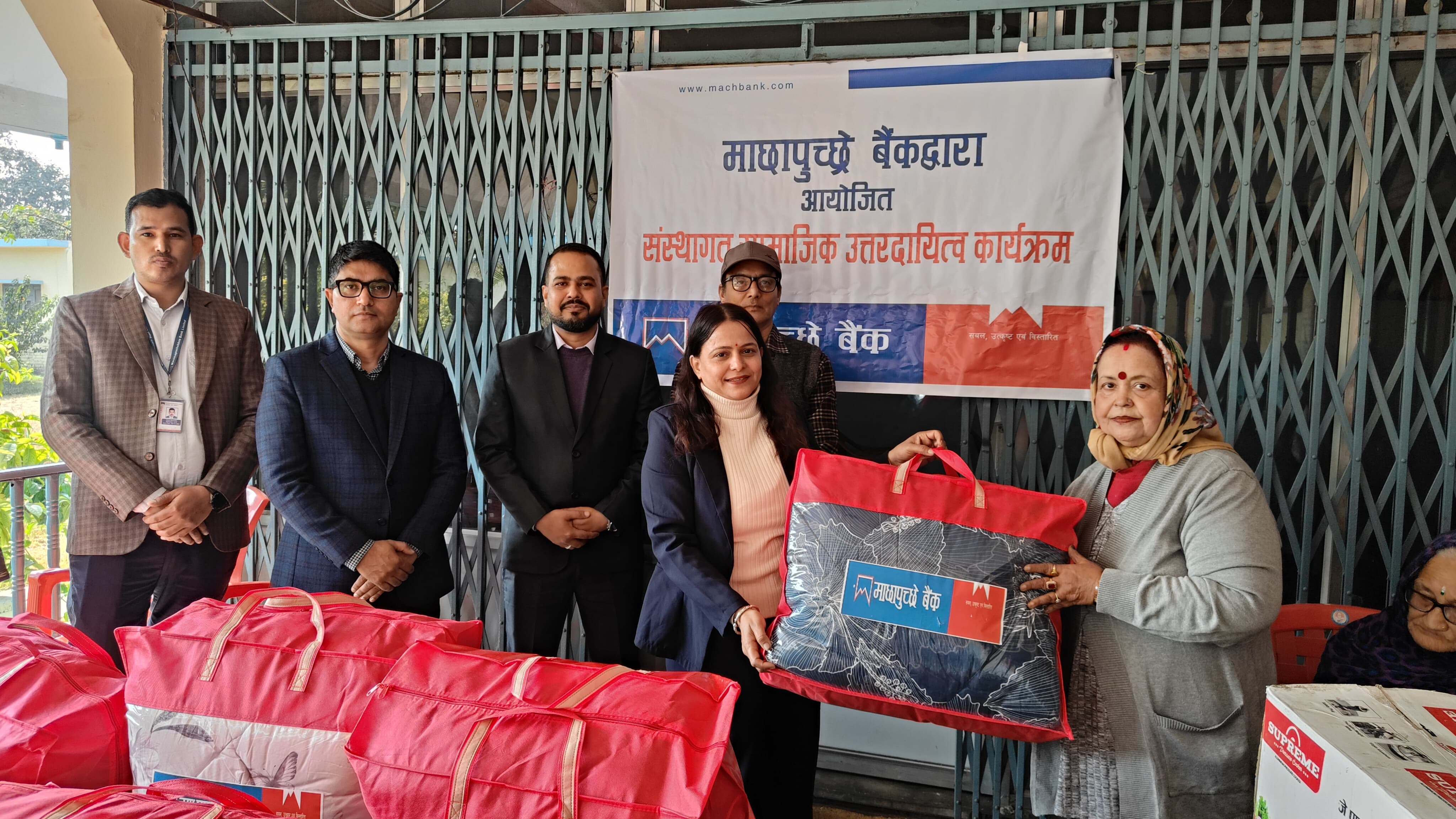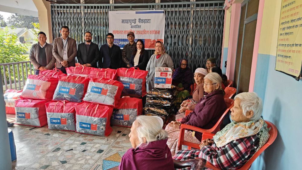 Machhapuchchhre Bank, as a part of its Corporate Social Responsibility (CSR) initiative, provided winter essential bedding sets (blankets), daily food items, and kitchen utensils to Satya Sai Briddha Ashram, Rupandehi.